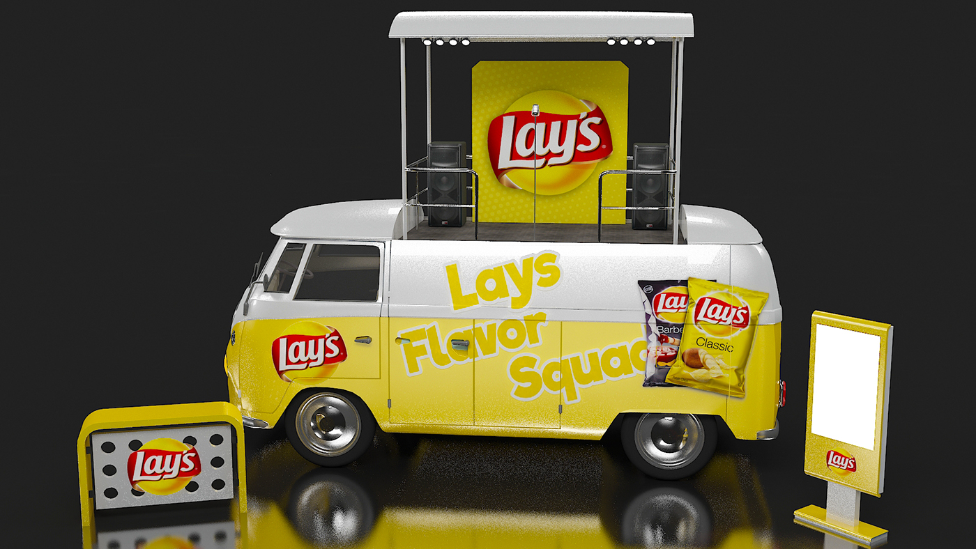 When Lays approached Clutchpilot, they faced unique exhibit challenges: Mobility & Design Balance The van needed to be eye catching on the move but also functional when parked at events. Brand Recall – Ensuring the Lays identity stood out in crowded public spaces with high visibility branding. Consumer Interaction – The van wasn’t just for branding; it had to provide engagement zones for sampling, photo ops, and live promotions. Technical Constraints – Designing within the limitations of a vehicle’s dimensions while maintaining a strong 3D visual appeal.