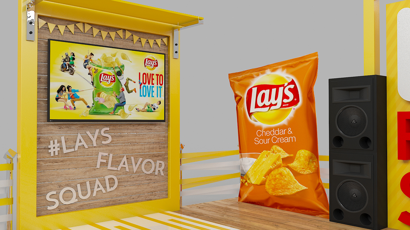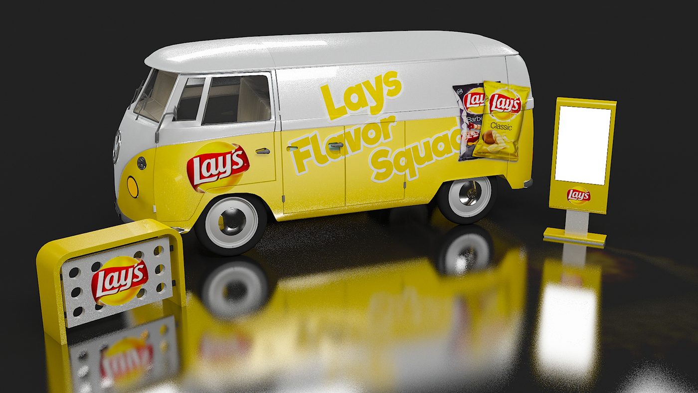 1. Ideation & Concept Development We started with storyboarding and mood boards, aligning with Lays’ fun, youthful, and flavor packed personality. Developed creative concepts such as giant Lays chip props, bold yellow branding, and interactive van extensions (e.g., fold-out counters for sampling). 2. 3D Visualization & Prototyping Created photo realistic 3D renders of the van in multiple layouts: traveling mode, parked setup, and event-ready mode. Integrated brand elements like oversized chip bags, neon lights, and digital screens for campaign storytelling. 3. Functional & Modular Design Designed a modular setup that allowed the van to transform: Fold out serving counters for free samples LED displays for live campaign content Photo-op corners with larger-than-life Lays branding Ensured smooth visitor flow and safety compliance while keeping it compact and road legal. 4. Execution & On Ground Support Provided detailed CAD drawings and fabrication blueprints for the build team. Coordinated with branding partners to match Pantone-perfect Lays yellow for consistency. Supported final installation and quality checks to ensure the van was as vibrant in reality as in the renders.